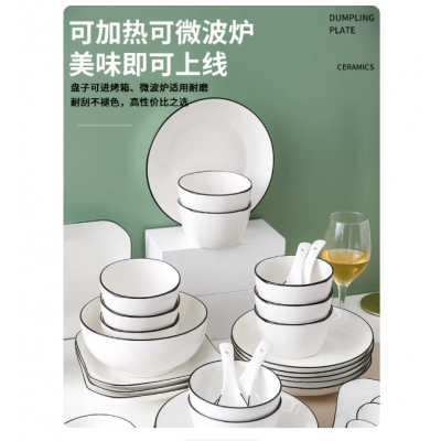 十人碗碟家用餐具套装2025釉下彩饭盘筷陶瓷现代简约乔迁防烫骨瓷