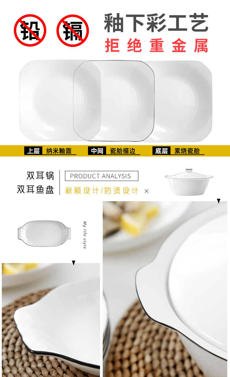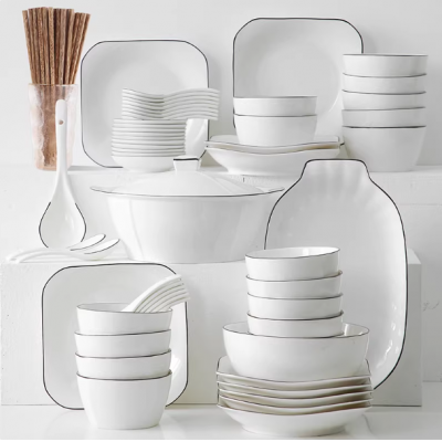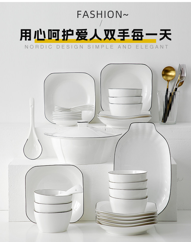 十人餐具套装乔迁碗盘碗筷碗具简约新婚送礼陶瓷盘子成套碗碟家用