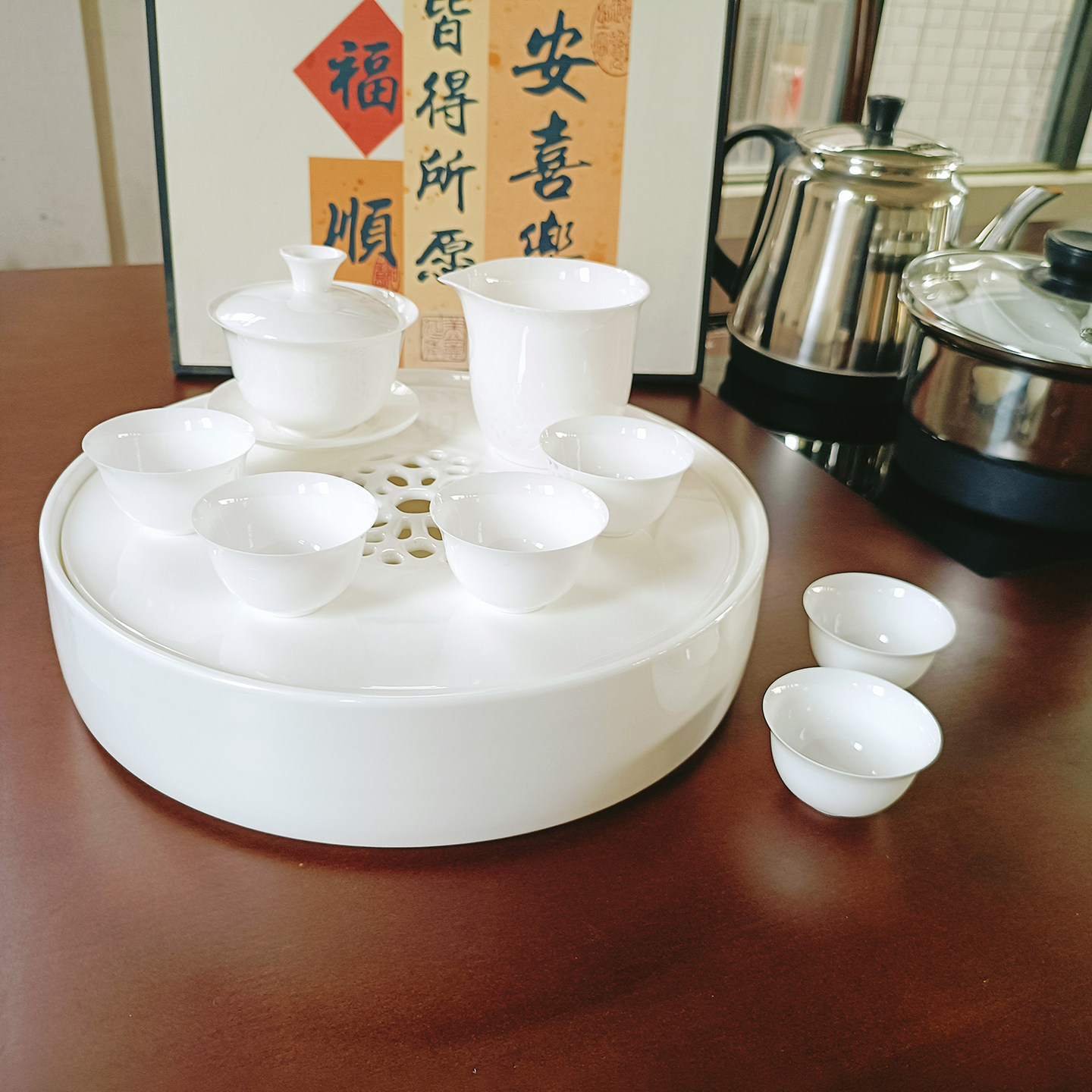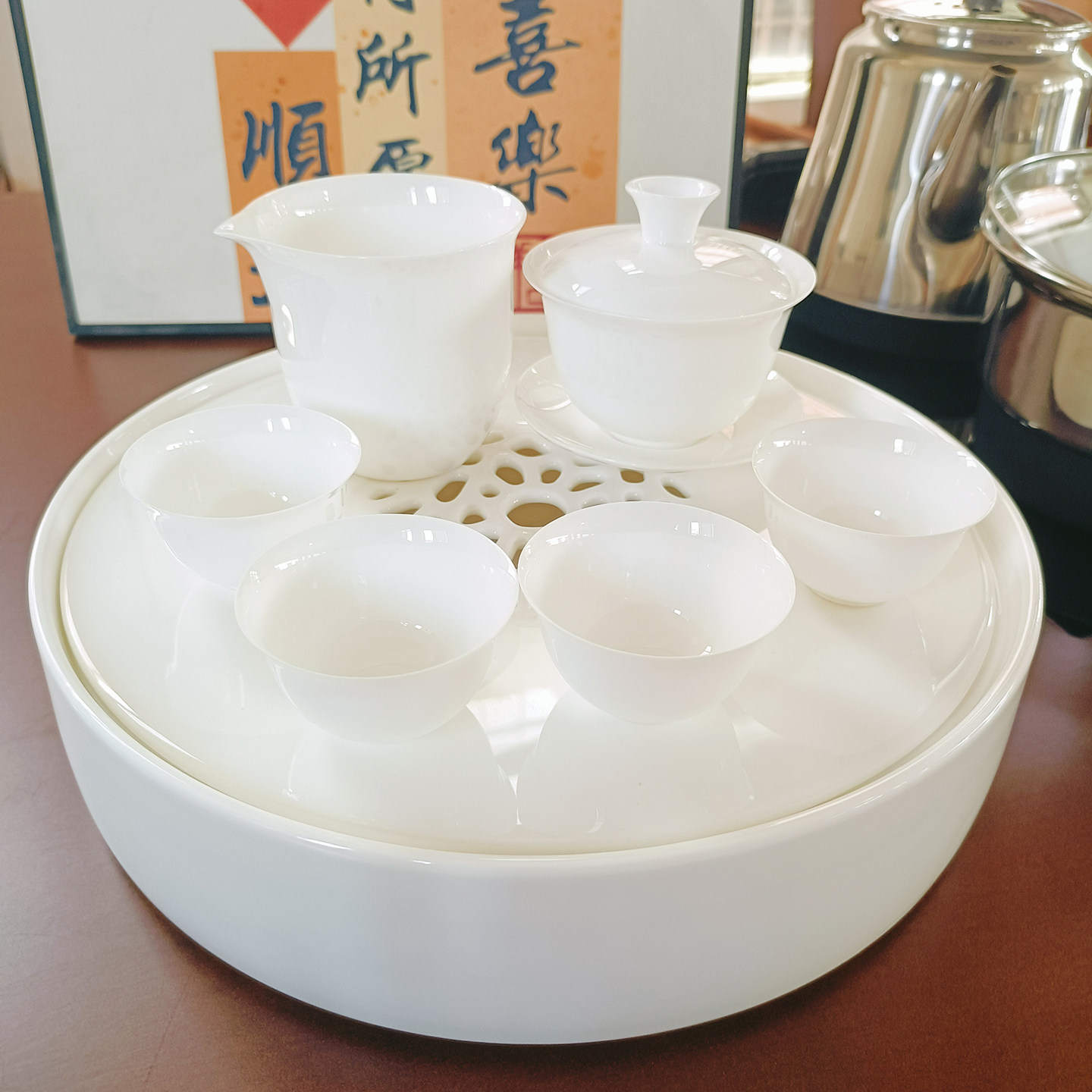 骨瓷茶具套装 6杯+1公杯+1盖碗 10寸骨瓷茶盘单盘 (储水) 单盘 12 寸骨瓷茶盘 (储水) 单盘 |